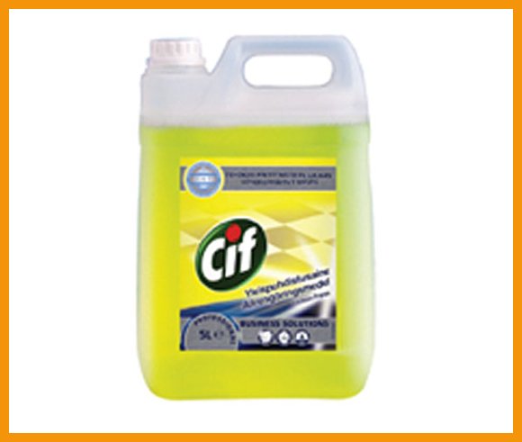 Cif Pro Formula Lemon on sitruunantuoksuinen yleispuhdistusaine kaikille vettä sietäville pinnoille, kuten lattioille, maalatuille pinnoille, kaakeleille ja kylpyammeille. Aine irrottaa tehokkaasti likaa eikä sitä tarvitse huuhdella pinnoilta.Pakkauskoko: 5 litraa