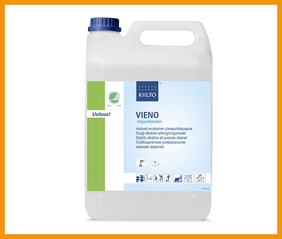 Kiilto Pro Vieno Hajusteeton on heikosti emäksinen yleispuhdistusaine kaikkien kovien pintojen ylläpitosiivoukseen sekä käsi- että konemenetelmin. Hajusteettomalla tuotteella on erinomainen puhdistusteho.Tuote soveltuu yhtä hyvin sekä ylläpitosiivoukseen että lattioiden pintapesuihin ja kalusteiden perussiivoukseen.