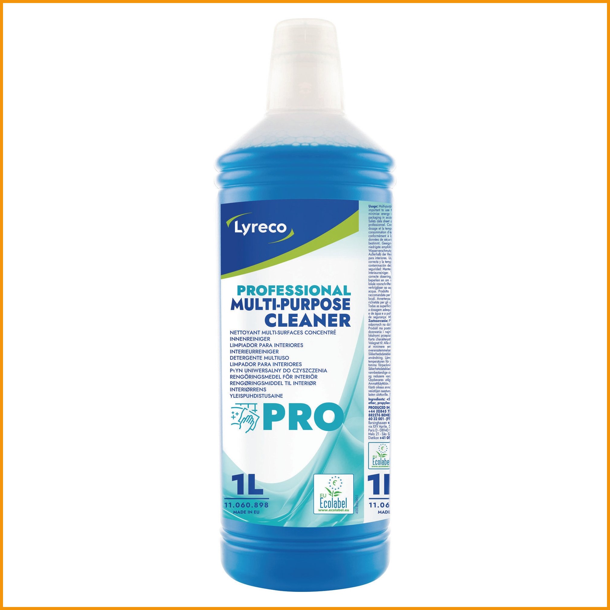 Lyreco pro on ammattikäyttöön kehitetty, raikas sitruksen tuoksuinen yleispuhdistusaine kaikille vettä kestäville pinnoille. se ei jätä jäämiä pintoihin, joten erillistä huuhtelua ei tarvita. yleispesuaine sopii esimerkiksi toimistokalusteiden, ovenkahvojen ja ikkunalautojen puhdistukseen. sopii erinomaisesti myös lasipinnoille. laimennettava tiiviste. ympäristöystävällisellä tuotteella on eu-ympäristömerkki. Yleispuhdistusaineen minimitilaus 1. Tukkupakkauksessa 12.Yleispuhdistusaine Lyreco pro 1l on erinomainen pesuaine, jonka verkkokauppatilauksen toimitus perille kestää 1-2 päivää. Tiedäthän, että toimitus on ilmainen yli 140 € hintaisille verkkokauppa ostoksille! Meiltä voit tilata laskulla ja ilman rekisteröitymistä.