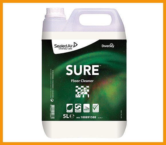 SURE Floor Cleaner on biohajoava ja matalavaahtoinen yleispuhdistusaine. Heikosti emäksinen tuote soveltuu kaikkien vettä sietävien kovien pintojen puhdistamiseen sekä käsi- että konemenetelmin ja annostusta muuttamalla myös tehopuhdistukseen, siivoustekstiilien kostutukseen ja pesuun painehuuhtelukoneella sekä pyykinpesukoneessa. Aine kuivuu nopeasti jälkiä jättämättä.Biohajoava tuote on valmistettu uusiutuvista, luonnon omista raaka-aineista. Ei sisällä luonnolle tai käyttäjälle vaarallisia luokituksia. Tuotteella on EU Ecolabel -ympäristösertifikaatti.