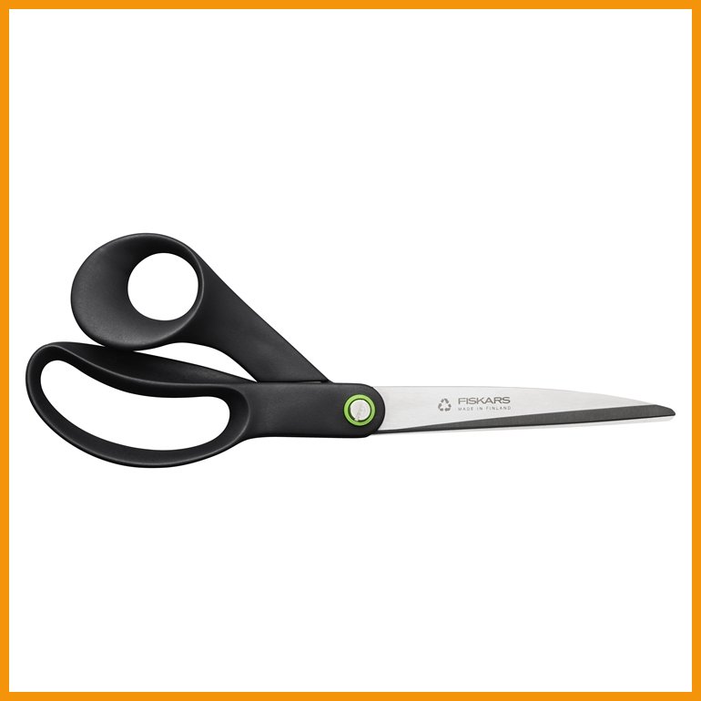 Fiskars Functional Form ReNew -yleissakset on valmistettu vähintään 70-prosenttisesti kierrätetyistä materiaaleista. Oikeakätisten käyttöön muotoillut sakset soveltuvat kaikenlaiseen leikkaamiseen kotona, toimistossa ja pihapiirissä.Konepesun kestävissä saksissa on ergonomisesti muotoillut kädensijat ja ruostumattomasta teräksestä valmistetut tarkkuushiotut terät.