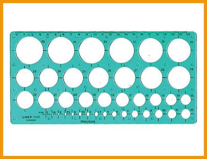 Linex 116 College -ympyräkaaviossa on valmiit sapluunat halkaisijaltaan 1-35 mm ympyröiden piirtämiseen. Yläreunassa on myös 22 cm viivain metrisellä asteikolla.Mitat: 240 x 120 x 1,2 mm.