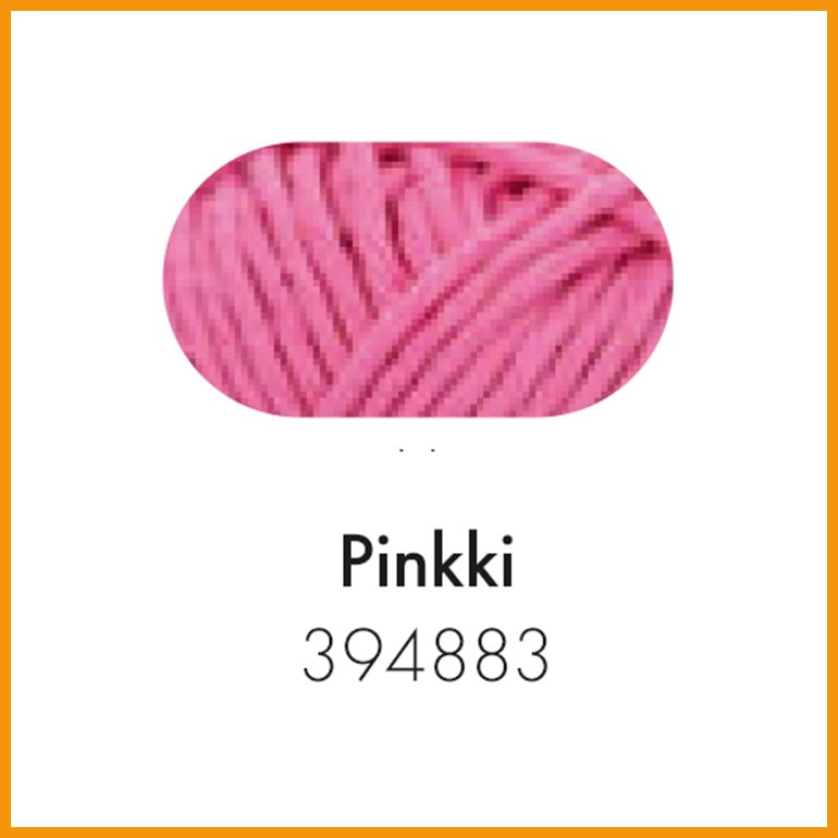Pehmeä merseroimaton 100 % puuvillalanka, joka soveltuu virkkaukseen ja neulomiseen, etenkin erilaisiin kodin tuotteisiin: pannunaluset, patalaput, säilyttimet, kassit, pesulaput ja muut sisustustuotteet. Sopii hyvin myös aloittelijalle. Puikko- ja virkkuukoukkusuositus 4 mm. 50 g = noin 70 m. Öko-Tex-standardi 100 sertifikaatti.